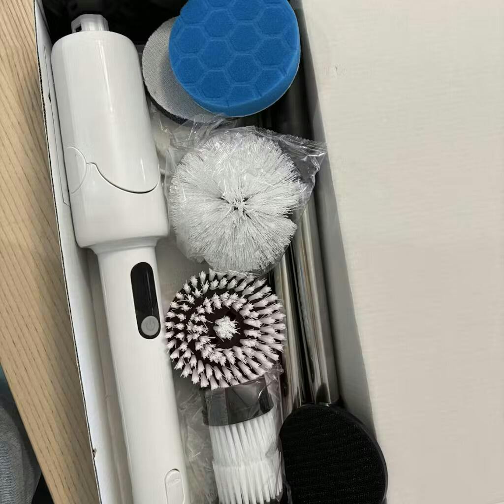 • Flat Brush Heads (2) — Wide coverage for tile walls, tubs, shower floors, and pool surfaces • Corner Brush Heads (2) — Pointed bristles get into grout lines, around faucets, tight edges, and drain areas • Cloth Brush Heads (2) — Gentle microfiber for wood floors, furniture, and delicate surfaces • Sponge Brush Heads (2) — Smooth cleaning for windows, mirrors, glass doors, and polished surfaces